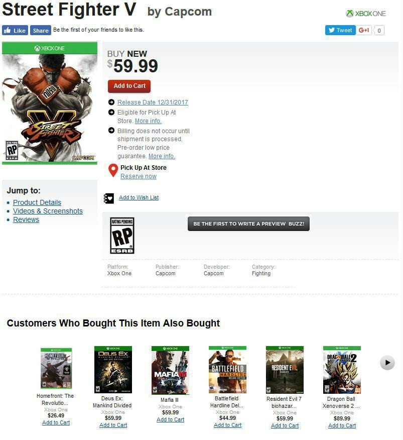 بعد موقع امازون هاهو متجر GameStop يقوم برصد نسخة الـXbox One من لعبة القتال Street Fighter V التي صدرت سابقا على أجهزة البلايستيشن4 و الحاسب الشخصي بشكل حصري.