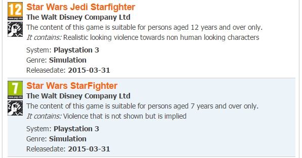لعبتا Star Wars: Starfighter وJedi Starfighter قادمتين للـPS3 حسب منظمة PEGI