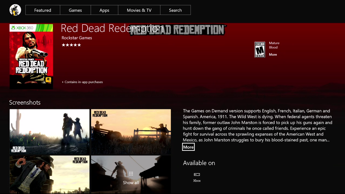 تحديث الصفحة الرئيسية للعبة Red Dead Redemption بمتجر الـXbox الرقمي