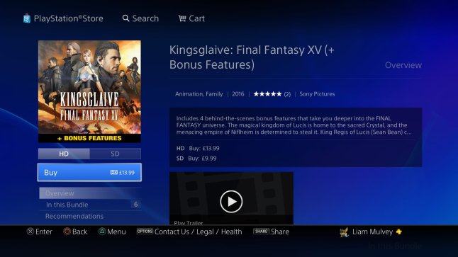 فيلم Final Fantasy XV: Kingsglaive أصبح متوفرا الأن بشكل رقمي للتحميل من خلال المتجر الرقمي للبلايستيشن و Amazon أيضا,