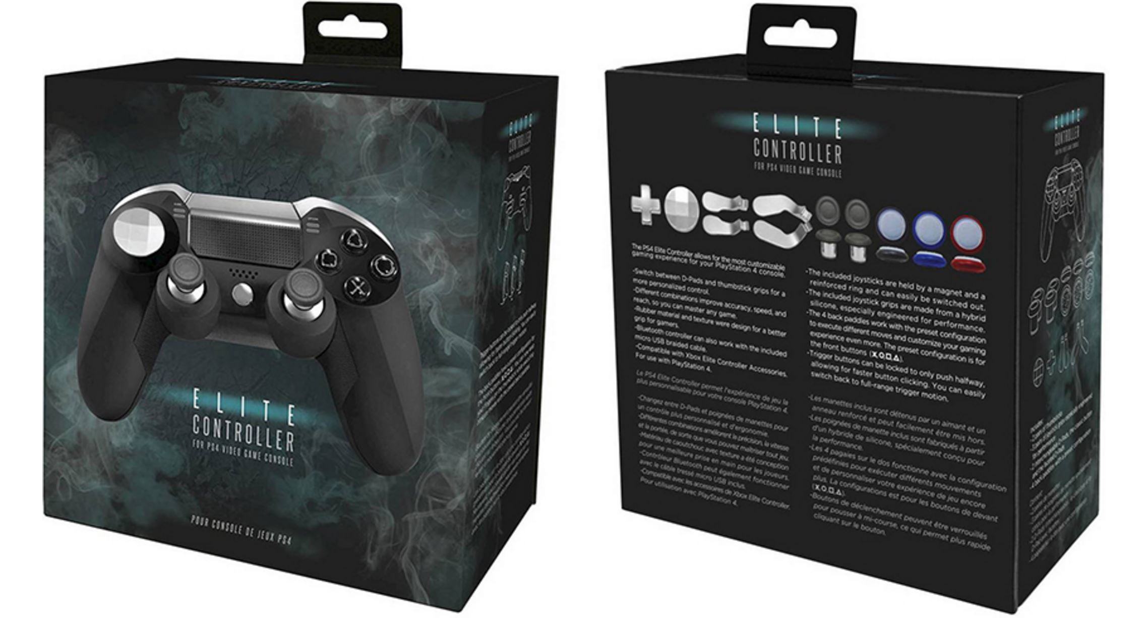 واحدة من شركات الطرف الثالث المتخصصه بالإكسسوارات تنوي إصدار جهاز تحكم جديد للبلايستيشن4 بمزايا الـElite بإمكانية تخصيص الأزرار ووجود أزرار إضافية بالخلف تساعد اللاعبين بألعاب القيادة وكذلك العاب التصويب، جهاز التحكم الجديد ظهر بمتاجر target الأمريكية وبسعر 322 ريال سعودي: