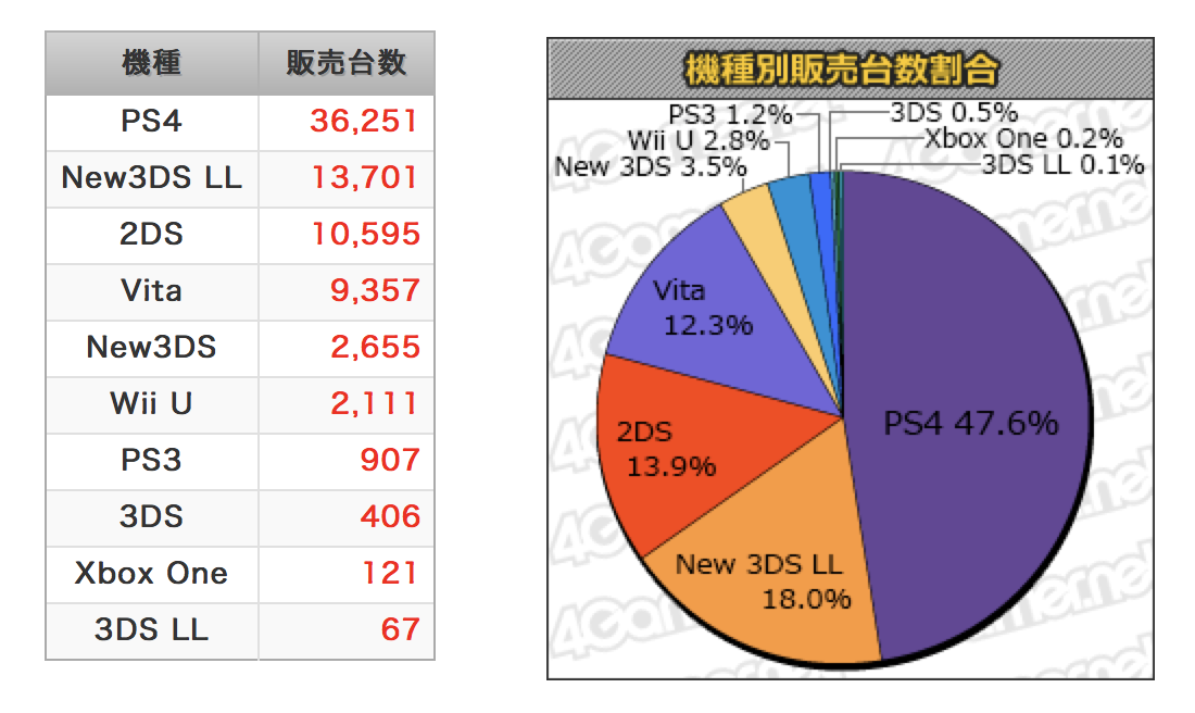 قامت وكالة Media Create بنشر مبيعات الألعاب و الأجهزة الأسبوعية في اليابان هذا الأسبوع. و نبدأ بمبيعات الأجهزة و اللتي ظهرت كالتالي: